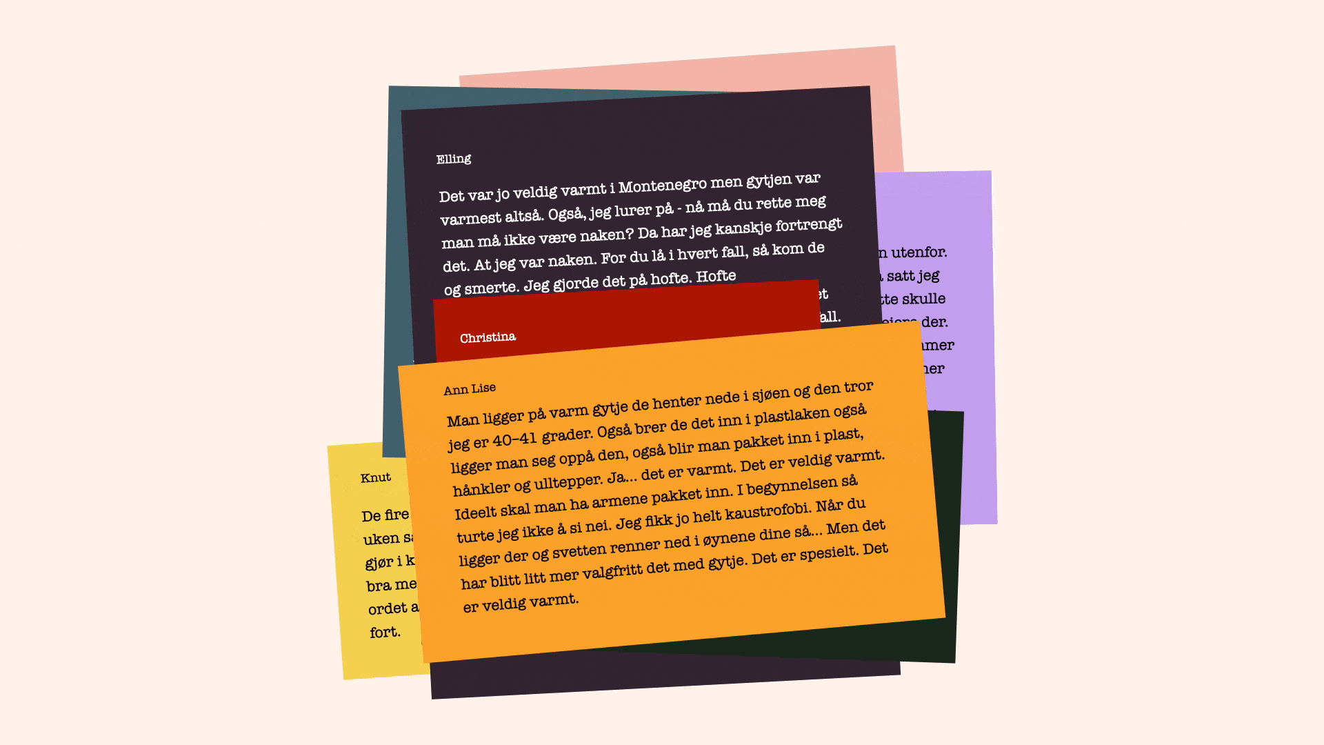 Som en del av ArChro-forskningsprosjektet ved NTNU, utforsker dette animasjonsprosjektet hvordan gjørmeterapi gir øyeblikk av lindring og refleksjon for mennesker med kronisk sykdom. Ved å bruke pasienthistorier og arkivforskning forvandles opplevelsen av smerte og sårbarhet til en sanselig, visuell reise.